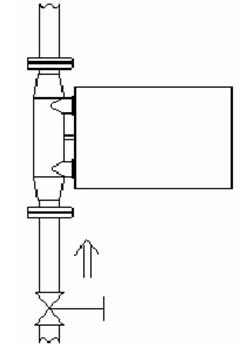 垂直管道: 旗式安装, 自排空, 测量液体或浆液, 液体必须从下往上流