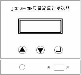 复合型流量计前面板的中央是显示窗口,用于显示数据和信息。 显示窗口下面有三个键,上方圆圈内有一个键,此四个键是磁性开关键,操作时用专用磁笔贴近键面圆圈的玻璃即可。窗口下面从左至右分别是上翻键、下翻键及回车键,窗口上方是回车同步键。 2.计量校准 JGKLB-CMFI型质量流量计属高精度计量仪表,使用中为了保证测量数据的准确,要定期送计量部门检定。检定校准的操作如下: 直接测量仪表的频率输出。需要预先进入设置菜单设置频率输出的质量流量上限值,该值对应输出频率10kHz。在正常操作菜单下,选中已接线的输出通道为质量流量,就可以进行计量检定了。 如果计量检定结果超差,可以依据测试结果修正流量参数k。新的流量系数k1计算公式如下: 误差:δ= ( mfd – mfs ) / mfd * 100 % k1 = k0 * ( 1 –δ ) 式中:k1 — 新的流量系数,用于输入到二次表中; k0 — 二次表中原存储的旧流量系数; mfs — 计量标准得到的质量平均值; mfd — 二次仪表显示的质量平均值; δ — 误差。 简化计算: k1 = k0 * mfs / mfd