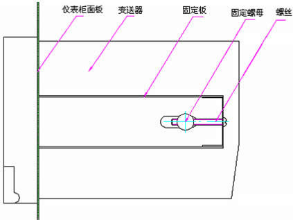 本安型流量计变送器一般安装在仪表柜上,仪表柜上开一152mm X 152mm的方孔,然后用随机附送的固定板、固定螺母和螺丝按图二所示固定本安型流量计变送器。