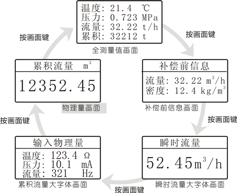 1. 当温度或压力输入信号选择为“无”时,仪表自动隐藏各画面的温度或压力显示;