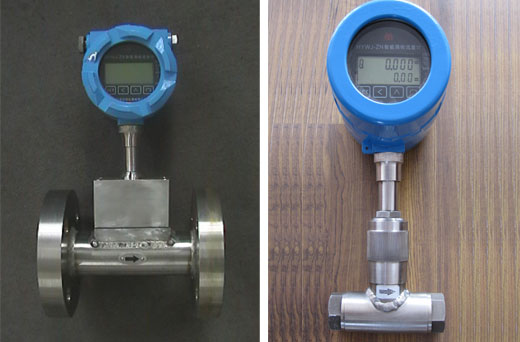 一体式测量低粘度液体时,集涡街流量传感器和显示仪于一体,自带3.6V高能电池或24VDC(通常在需要脉冲信号输出、二线制4~20mADC输出或RS485通讯时采用)供电,就地液晶显示瞬时体积流量(m3/h)和累计体积流量(m3)。
